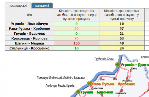 219 транспортних засобів очікують у прикордонних автомобільних пунктах пропуску на Львівщині, а ще 280 скупчилися перед ними.