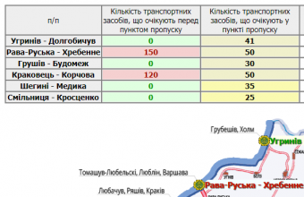 231 транспортний засіб очікують у пунктах пропуску на Львівщині, а ще 270 скупчилися перед ними.