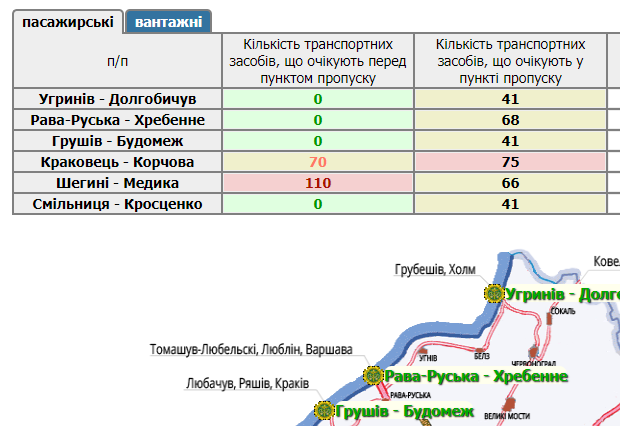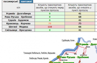 332 автомобілі вишикувалися в прикордонних автомобільних пунктах пропуску на Львівщині, а ще 180 – перед ними.
