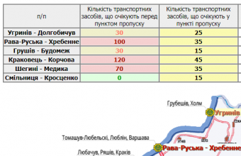 170 транспортних засобів очікують у пунктах пропуску на Львівщині, а ще 350 скупчилися перед ними.