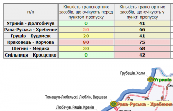 333 транспортні засоби очікують у пунктах пропуску на Львівщині, а ще 190 скупчилися перед ними.
