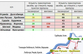 363 транспортні засоби очікують у пунктах пропуску на Львівщині, а ще 170 скупчилися перед ними.