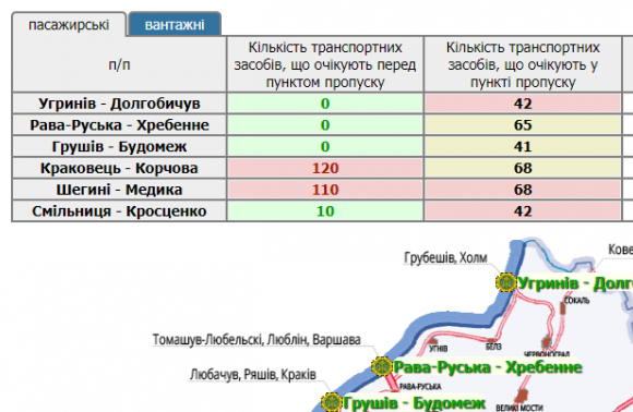 306 транспортних засобів очікують у прикордонних автомобільних пунктах пропуску на Львівщині, а ще 240 скупчилися перед ними.