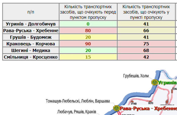 333 транспортні засоби очікують у пунктах пропуску на Львівщині, а ще 225 стоять перед ними.