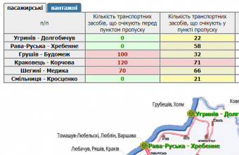 У прикордонних автомобільних пунктах пропуску на Львівщині стоять у чергах 270 транспортних засобів.