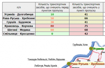 333 транспортні засоби очікують у пунктах пропуску на Львівщині, а ще 230 скупчилися перед ними.