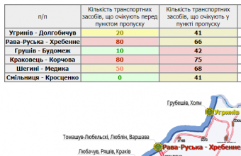 333 транспортні засоби очікують у пунктах пропуску на Львівщині, а ще 240 скупчилися перед ними.