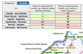 346 транспортних засобів очікують у прикордонних автомобільних пунктах пропуску на Львівщині, а ще 230 скупчилися перед ними.
