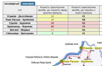 333 транспортні засоби очікують у прикордонних автомобільних пунктах пропуску на Львівщині, а ще 245 скупчилися перед ними.