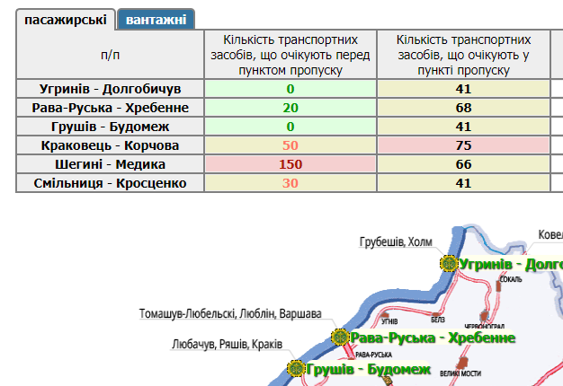 332 автомобілі вишикувалися в прикордонних автомобільних пунктах пропуску на Львівщині, а ще 250 – перед ними.