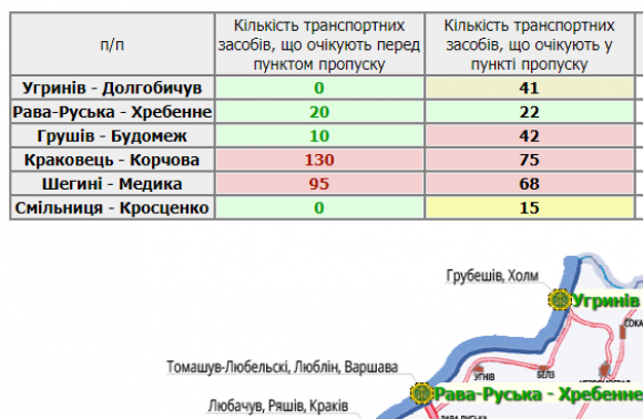 333 транспортні засоби очікують у пунктах пропуску на Львівщині, а ще 255 стоять перед ними.