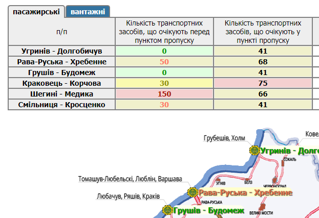 332 автомобілі вишикувалися в прикордонних автомобільних пунктах пропуску на Львівщині, а ще 260 – перед ними.