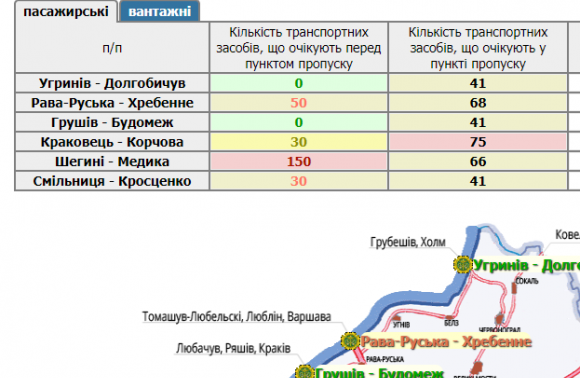 332 автомобілі вишикувалися в прикордонних автомобільних пунктах пропуску на Львівщині, а ще 260 – перед ними.