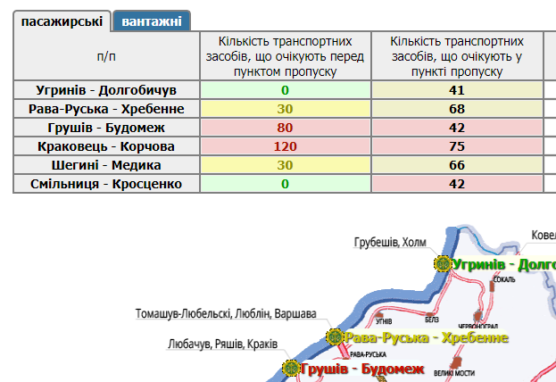332 автомобілі скупчилися в прикордонних пунктах пропуску на Львівщині, а ще 260 – перед ними.
