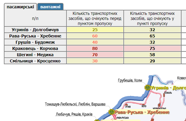 293 автомобілі скупчилися в прикордонних пунктах пропуску на Львівщині, ще 305 – перед ними.