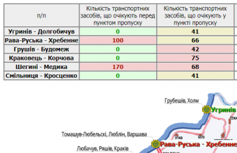 333 транспортні засоби стоять у чергах у пунктах пропуску на Львівщині, ще 270 вишикувалися перед ними.
