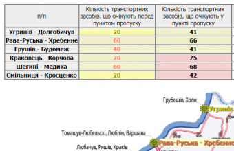 333 транспортні засоби очікують у пунктах пропуску на Львівщині, а ще 270 скупчилися перед ними.