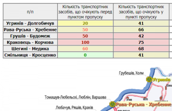 333 транспортні засоби очікують у пунктах пропуску на Львівщині, а ще 280 скупчилися перед ними.
