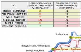 333 транспортні засоби очікують у пунктах пропуску на Львівщині, а ще 280 стоять перед ними.