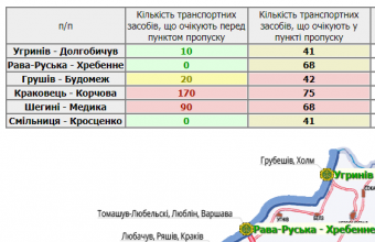 333 транспортні засоби очікують у пунктах пропуску на Львівщині, а ще 290 стоять перед ними.