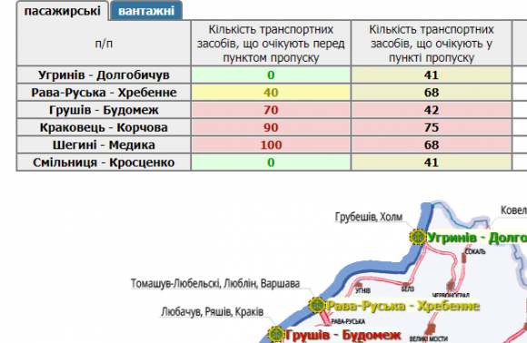 335 автомобілів вишикувалися в прикордонних пунктах пропуску на Львівщині, а ще 300 – перед ними.
