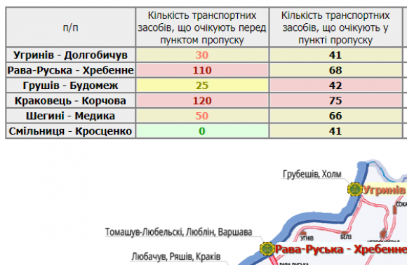 333 транспортні засоби очікують у пунктах пропуску на Львівщині, а ще 315 скупчилися перед ними.