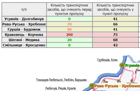333 транспортні засоби очікують у пунктах пропуску на Львівщині, а ще 330 скупчилися перед ними.