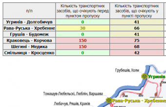 333 транспортні засоби очікують у пунктах пропуску на Львівщині, а ще 330 скупчилися перед ними.