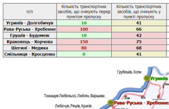 333 транспортні засоби очікують у пунктах пропуску на Львівщині, а ще 350 скупчилися перед ними.