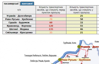 237 транспортних засобів очікують у прикордонних автомобільних пунктах пропуску на Львівщині, а ще 465 скупчилися перед ними.