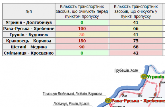 333 транспортні засоби очікують у пунктах пропуску на Львівщині, а ще 400 стоять перед ними.