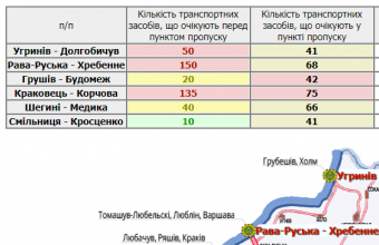 333 транспортні засоби очікують у пунктах пропуску на Львівщині, а ще 405 скупчилися перед ними.