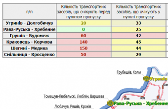 333 транспортні засоби очікують у пунктах пропуску на Львівщині, а ще 430 стоять перед ними.