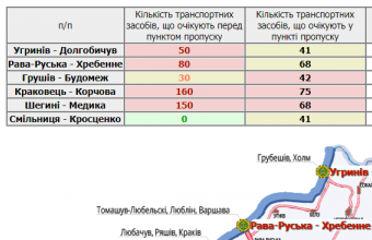 333 транспортні засоби очікують у пунктах пропуску на Львівщині, а ще 470 стоять перед ними.