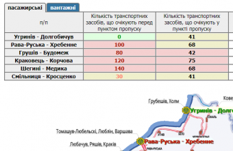 335 транспортних засобів очікують у прикордонних автомобільних пунктах пропуску на Львівщині, а ще 470 скупчилися перед ними.