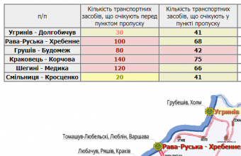 333 транспортні засоби скупчилися в чергах у пунктах пропуску на Львівщині, а ще 490 вишикувалися перед ними.
