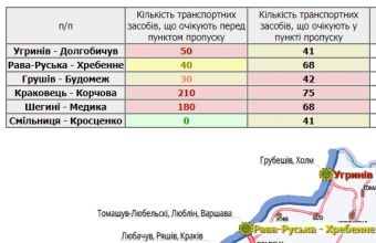 333 транспортні засоби очікують у пунктах пропуску на Львівщині, а ще 510 стоять перед ними.