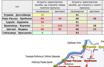 384 транспортні засоби очікують у прикордонних автомобільних пунктах пропуску на Львівщині, а ще 520 скупчилися перед ними.