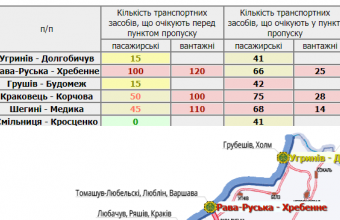 400 транспортних засобів очікують у пунктах пропуску на Львівщині, а ще 565 скупчилися перед ними.