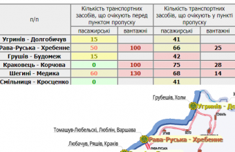 430 транспортних засобів очікують у пунктах пропуску на Львівщині, а ще 565 скупчилися перед ними.