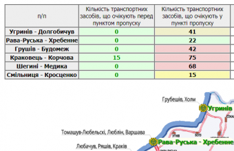 333 транспортні засоби очікують у пунктах пропуску на Львівщині й лише 15 стоять перед ними.