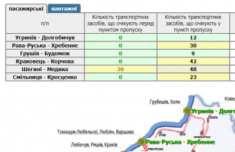 У прикордонних автомобільних пунктах пропуску на Львівщині стоять 164 транспортні засоби, а ще 30 скупчилися перед пунктом пропуску «Шегині».