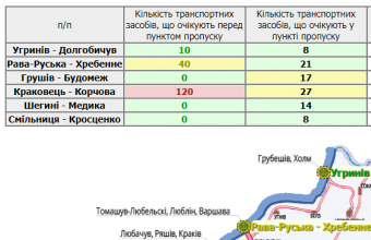 95 транспортних засобів стоять у чергах у пунктах пропуску на Львівщині, ще 170 вишикувалися перед пунктом пропуску «Рава-Руська».