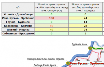103 транспортні засоби скупчилися в чергах у пунктах пропуску на Львівщині, а ще 190 вишикувалися перед ними.