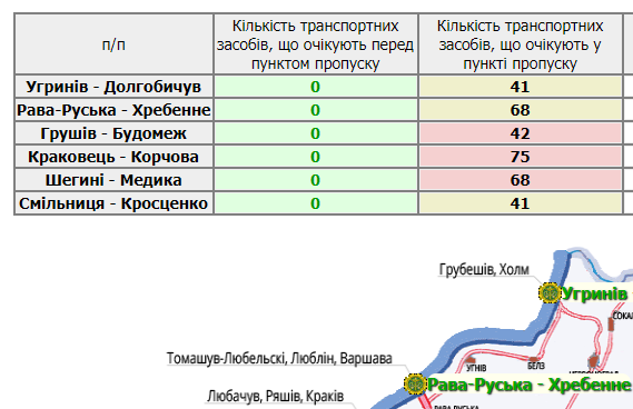 335 транспортних засобів очікують четвер, 31 травня, в пунктах пропуску на Львівщині.