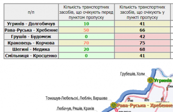 333 транспортні засоби очікують у пунктах пропуску на Львівщині, а ще 150 скупчилися перед ними.