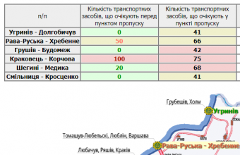 333 транспортні засоби очікують у пунктах пропуску на Львівщині, а ще 170 скупчилися перед ними.