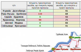 333 транспортні засоби скупчилися в чергах у пунктах пропуску на Львівщині, а ще 200 вишикувалися перед ними.