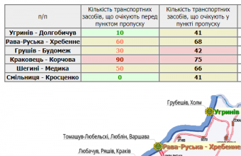 333 транспортні засоби стоять у чергах у пунктах пропуску на Львівщині, ще 240 скупчилися перед ними.
