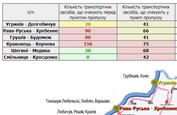 333 транспортні засоби очікують у пунктах пропуску на Львівщині, а ще 360 скупчилися перед ними.